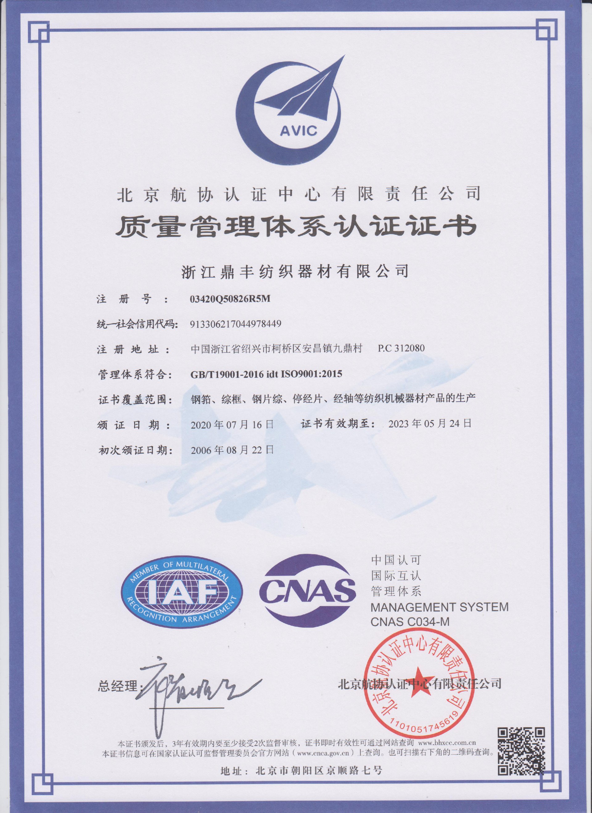 公司現(xiàn)有固定資產(chǎn)6000余萬元,員工300余人,現(xiàn)具有年產(chǎn)噴氣異型筘12萬米,劍桿筘32萬米,噴水筘5萬米,綜框20萬片,鋼片綜2億片,停經(jīng)片1.5億片, 織軸1.2萬套的生產(chǎn)能力。公司“越泉”商標(biāo)被評(píng)為“中國馳名商標(biāo)”。公司通過ISO9001 :2015國際質(zhì)量體系認(rèn)證,ISO14001:2015國際環(huán)境管理體系認(rèn)證,ISO45001:2018國際職業(yè)健康安全管理體系認(rèn)證,噴氣織機(jī)用鋼筘和織機(jī)用鋁合金綜框獲得“浙江制造”品牌認(rèn)證,公司擁有自營(yíng)進(jìn)出口權(quán),產(chǎn)品暢銷全國并遠(yuǎn)銷印度、巴基斯坦、土耳其、埃及、哥倫比亞、意大利等國家和地區(qū)。